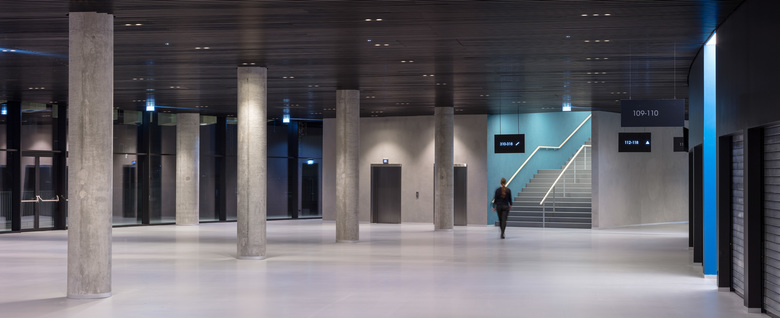 As concerts will make up a large proportion of events at the Royal Arena, the end stage configuration is very important. The Arena is also extremely flexible. It allows for a comprehensive range of staging options with a 22 meter height surrounding the stage. In addition, the symmetrical block layout, allows seating to be built up, reduced, expanded or sectioned off in the most appropriate ways for each concert, but also highly capable of adapting to quick operational changes and requirements based on ticket sales. The building has an open ground floor and a public plateau at the first floor level. Most of the spectators are seated on three sides of the stage/track/court, with the option to accommodate further visitors on the fourth side for sporting events and special cultural events. In concert-mode, the arena floor can be retracted.