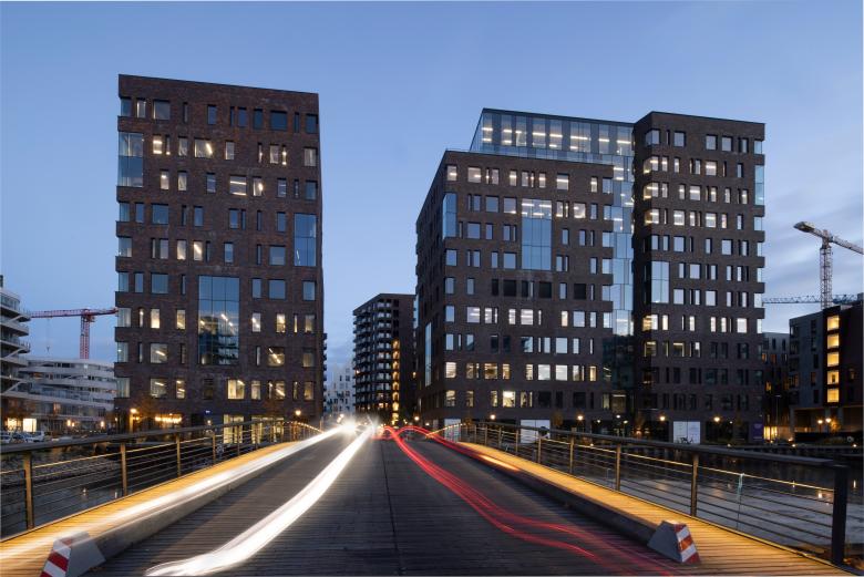 Inspired by the sharing economy, companies and residents have the opportunity to share a wide range of facilities such as a fitness centre with a sauna, harbour bathing area, canteen, meeting rooms and a large roof terrace. In the weekends, the meeting rooms can even be booked for social events, and the same goes for the canteen, which has already been used for weddings and confirmations. The overarching focus has been to design a building that is more than the sum of its parts and creates new possibilities for the development of the new harbour district.