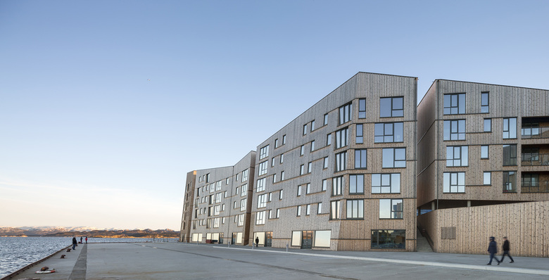 Norwegian Wood is designed in collaboration with Studio Ludo and is located at the urban seafront, encapsulating the essence of the city by developing the wooden architectural tradition and interpreting the Norwegian landscape. The shape of the building complex is thus based on a precise analysis of the site, as the architecture blurs the boundary between the urban space and the dramatic Norwegian landscape by appearing as a mountain range of wood on the edge between the city and the sea. The varying alleyways, the public squares and the interaction between residential and business units create a vibrant atmosphere, ensuring the area becomes a walkthrough with varying experiences.