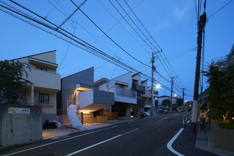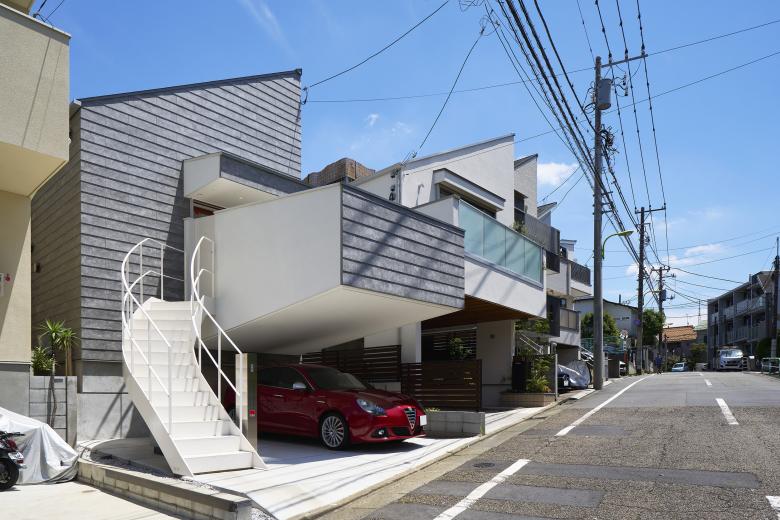 The site had a frontage of 6 m and an area of 99 sqm, and was surrounded by similar lots. Given the regulatory conditions of the vicinity, the outline of the detached houses in the neighborhood would inevitably be similar to one another, but there was some flexibility left in the balcony, so we wanted to make the most of the lot and characterize the house by the way we define the balcony.