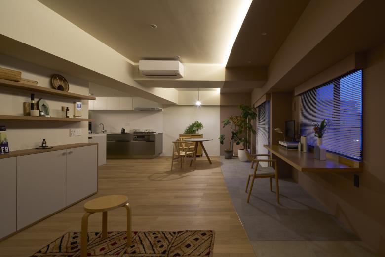 The apartment that the client purchased for his home is located near the railroad tracks, a few minutes walk from a small railway station. The vicinity is a quiet uptown residential area, with a laid-back atmosphere that emanates from the trains running through houses, the people walking in the neighborhood, and even the residents coming in and out of the apartment.