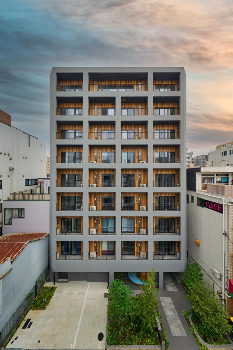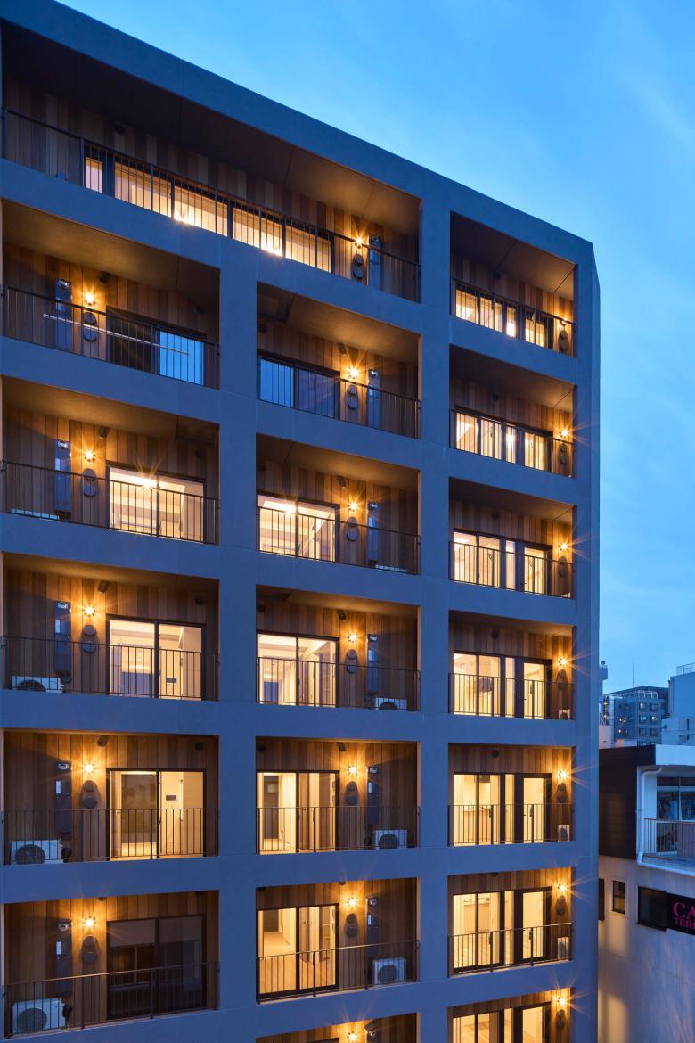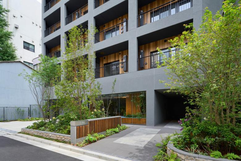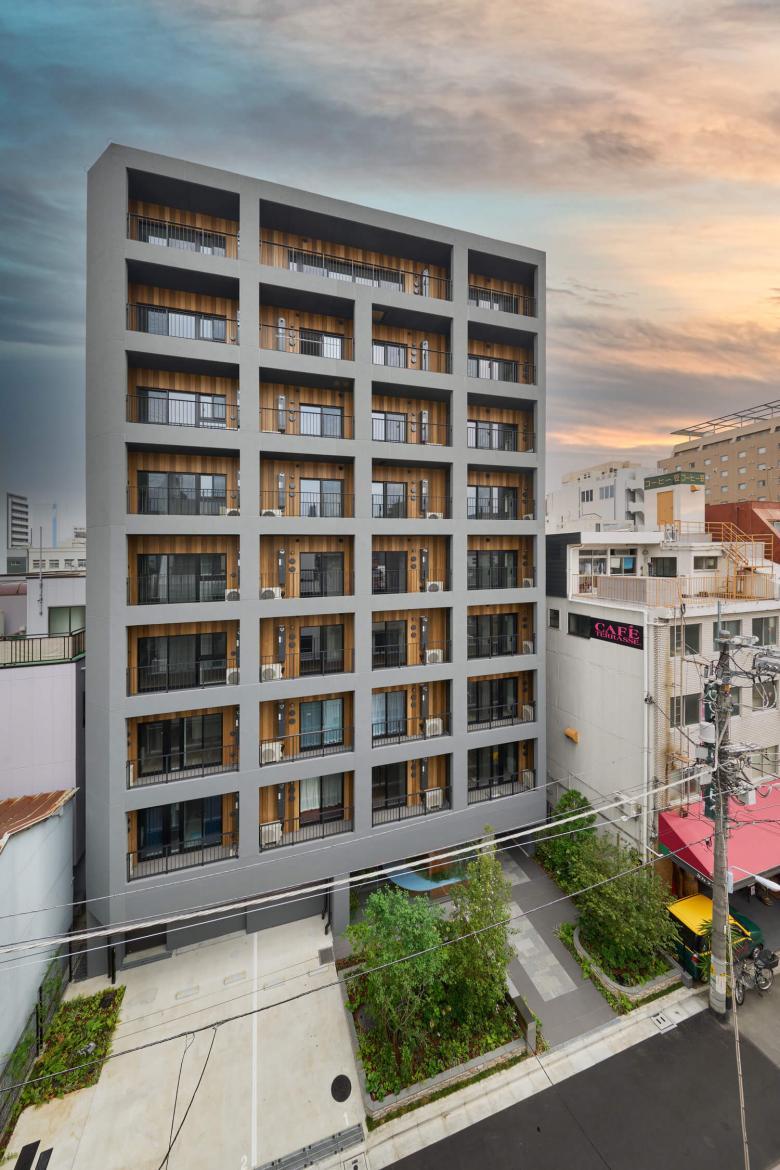 新御徒町駅から徒歩3分の敷地に建つ位置する地上9階建、全39戸の集合住宅。周辺には江戸期から続く問屋街や町工場が点在し、碁盤目状の区画と低層建物が織りなす街並みには、今なお下町情緒が色濃く残る。近年は高層マンションの建設が相次いでおり、スケール感や景観の分断が進む中で、この集合住宅は「都市と住まいの関係性」を再構築する試みとして構想された。