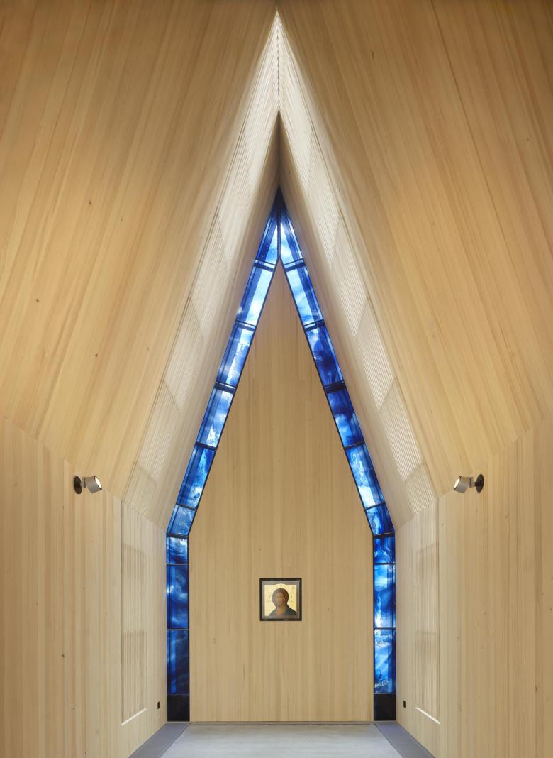 Die Kapelle bildet in Bezug auf Materialität und in Ihrem filigranen Erscheinungsbild den Kontrapunkt zur umgebenden Klosterarchitektur und wird ohne sichtbare christliche Insignien als besonderer Ort wahrgenommen.