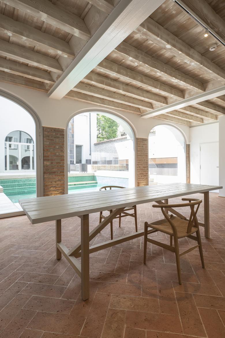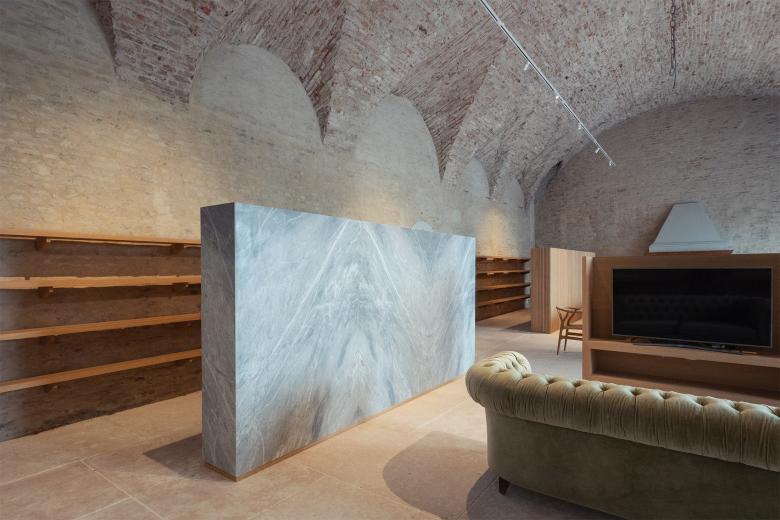 The two volumes were originally intended for a small theater room and a residential building respectively. Our project, keeps the distribution scheme of the plant unchanged and works on the redefinition of the individual internal and external spaces, through the introduction of architectural elements, furnishings and the search for finishes capable of expressing an idea of spirituality