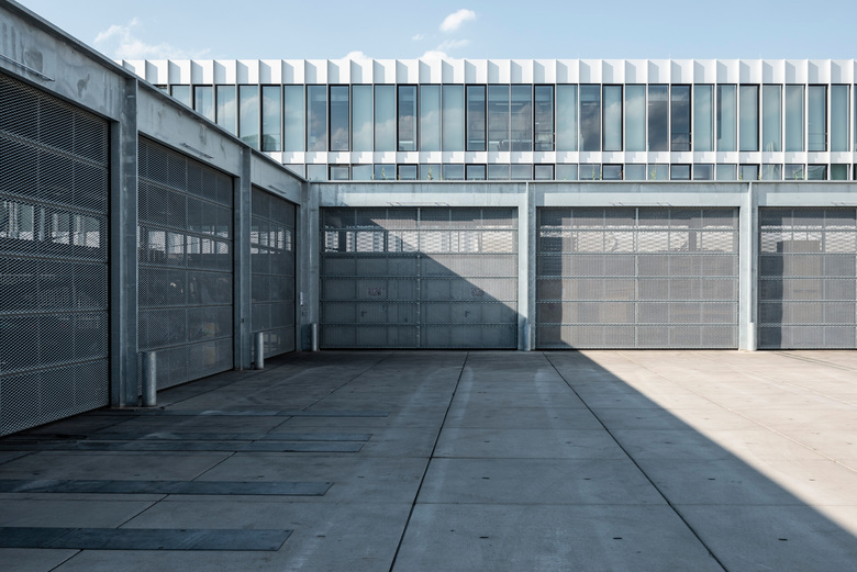 Die offene und transparente Aluminium-Glasfassade wird durch 50 cm tiefe und in einem Abstand von 1,50 m montierte Aluminium-Finnen vertikal strukturiert. Zwischen ihnen liegt ein außenliegender Sonnenschutz. Im Kontrast zur äußeren Erscheinung steht das durch raue Sichtbetonwände und schwarze Stahlgeländer, -türen und Fensterrahmen geprägte Innere. Ein breiter Gang umfasst den Hauptkern und verbindet Neu- und Bestandsbau. Diese Verbindung gab gleichzeitig die Gebäude- und Geschosshöhen vor: Die beiden unteren Etagen haben eine Höhe von jeweils vier Metern, das Obergeschoss dagegen sieben Meter.