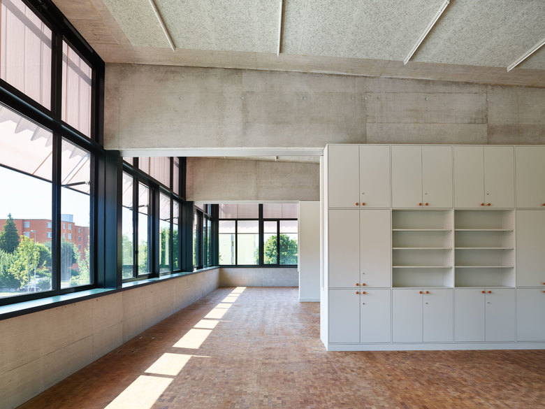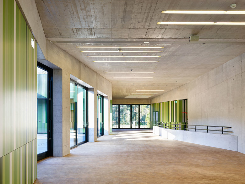 Das Quartier in Kleindöttigen ist geprägt durch eine heterogene Bebauung, bestehend aus mehrgeschossigen Wohnbauten und 1- bis 2-geschossige Infrastrukturbauten. Der Neubau steht am Rande dieses Gevierts, markiert den Übergang zur Naherholungszone entlang der Aare und gliedert sich als Werk und Arbeitsort in die Struktur der flachen Infrastrukturbauten ein. Sowohl die Proportionierung als auch der Ausdruck des Neubaus schafft einen Kontrapunkt zum bestehenden Wohnheim und will den Ortswechsel vom Wohnen zum Arbeiten als Bereicherung des Alltags erlebbar machen.