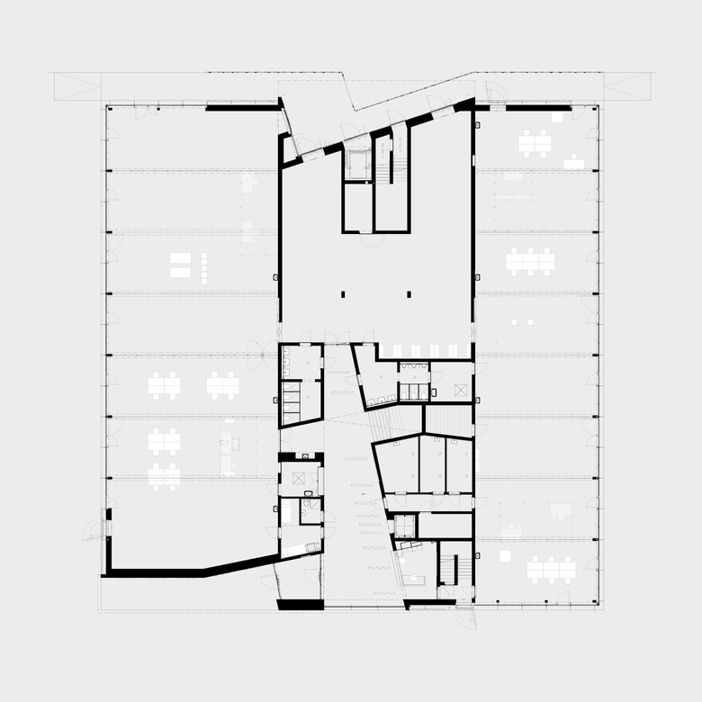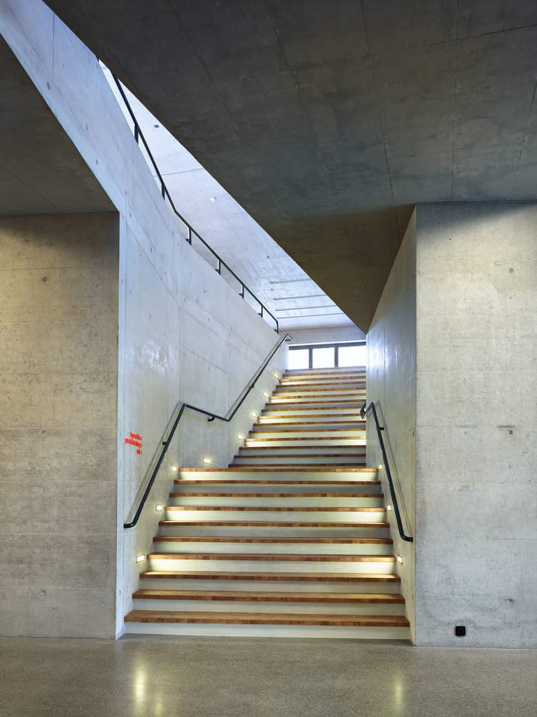 Die Dreiteilung des Baukörpers bildet die Grundlage für das statische und strukturelle Konzept. Der Mittlere Teilbereich mit den „dienenden“ Räumen ist als aussteifender Betonkern konzipiert und bildet das Rückgrat der Anlage. Beidseitig daran angegliedert sind die Werkhallen als Leichtbau in Stahl und Holoribblech vorgesehen. Die Nutzung der Haupträume ist auf zwei Geschossen angeordnet. Im Erdgeschoss befinden sich die Werkhallen mit der Anlieferung und dem Empfang, im Obergeschoss die Schulungs- und Gemeinschaftsräume mit den Beschäftigungsplätzen. Durch diese einfache Anordnung werden die vertikalen Bewegungen im Hause gering gehalten und lassen eine einfache Orientierung im Hause zu.