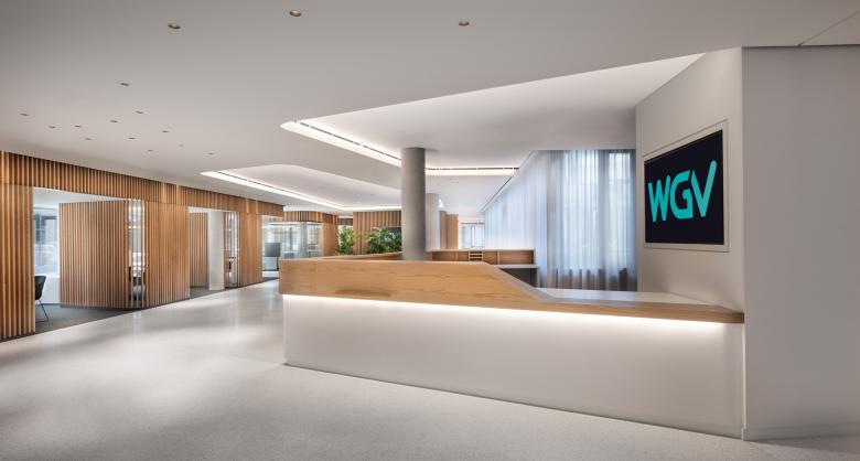 The heart of WGV is being built as part of an energy-efficient new building with a total area of 7,300 square meters on six floors and underground parking, which blends harmoniously into the cityscape with its appealing appearance and at the same time opens another chapter in the more than 100-year history of WGV in Stuttgart. The new customer service center on the first floor and the modern working environment on the office floors above provide space for 230 insurance employees.