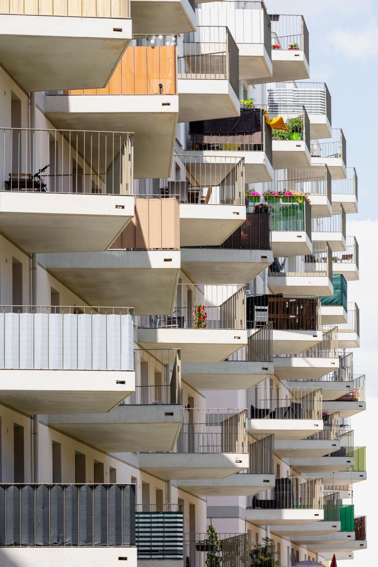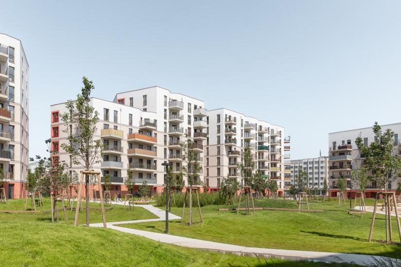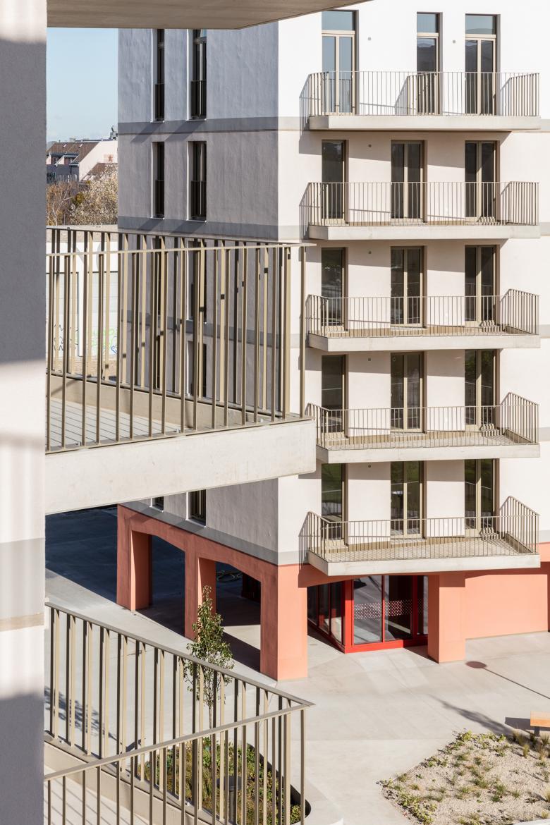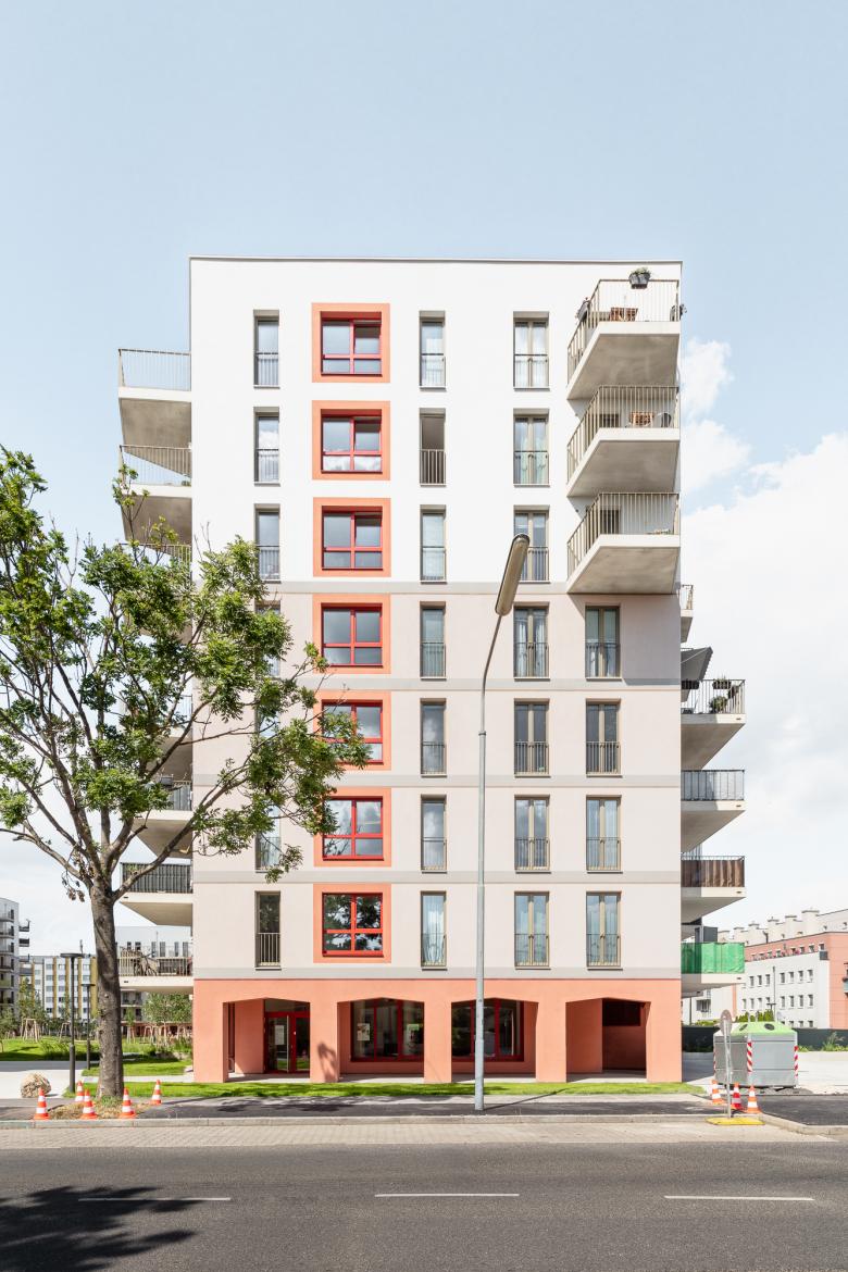 Der Kapellenhof im 22. Bezirk bietet leistbares Wohnen bei hoher Lebensqualität. Der perforierte Blockrand mit einem großzügigen Innenhof erinnert an den traditionellen Wiener Gemeindebau. Die Wohnungen bieten helle Räume, Weitblick und Grünraum. Der Hof im Zentrum der Anlage gestaltet sich abenteuerlich offen, bietet einen fließenden Übergang von Rückzugsflächen und Plätzen, die zur sozialen Interaktion anregen. Hofseitige Hauseingänge bilden mit dazugehörigen Gemeinschaftsträumen und Gemeinschaftsterrassen ein einladendes Ensemble. Ein erhöhter Sockel, der die Masse der Baukörper erdet, die stringente französische Fenstergliederung in der Hauptfassade, polygonale Balkone gemeinsam mit der Farbigkeit der unterschiedlichen Elemente erzeugen eine Homogenität in einer heterogenen Umgebung.