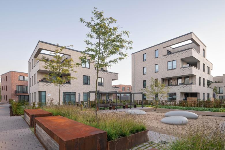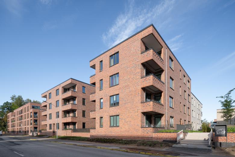 Die grundlegende Festlegung von Klinker als Fassadenmaterial, eine angemessene Reglementierung der Höhen, eine gemeinsame Tiefgarage sowie eine alle Gebäude verbindende Freianlagenplanung zeigen das Verbindende, ohne auf Individualität zu verzichten.