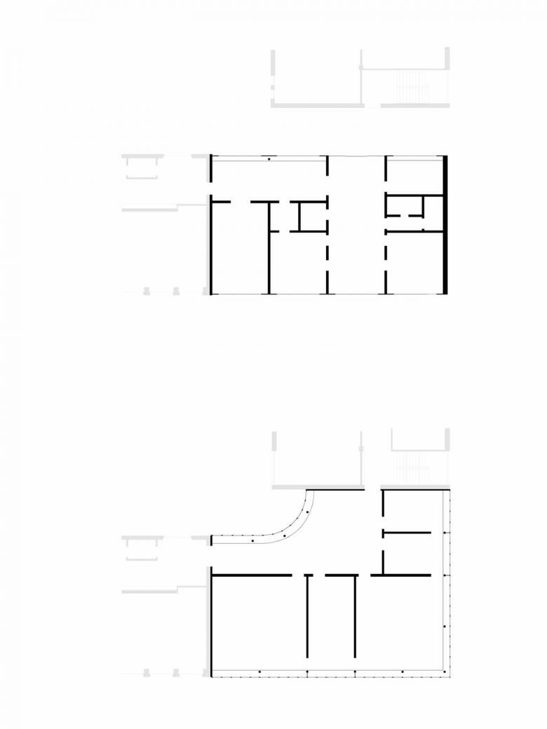 Im Erdgeschoss wird der Neubau vom Werkhof abgerückt und schafft einen Durchgang zum Pausenhof sowie einen gedeckten Zugang zur Verwaltung. Im Obergeschoss werden die beiden Bestandesbauten mit einer runden Fassade im Erschliessungsbereich verbunden. Dieser neu geschaffene Raum dient sowohl dem Unterricht und als auch als Garderobe. Die Klassenzimmer und Gruppenräume werden alle entlang der Fassade angeordnet und mit Verbindungstüren entlang der Fenster untereinander verbunden.