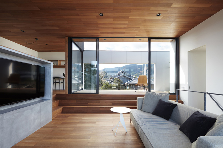The site overlooks a beautiful mountain range in Saijo City, Ehime Prefecture. On the other hand, the site is surrounded by houses and factories on all four sides. The northern side of the site is occupied by the family's soy sauce factory, while the eastern side is occupied by the parents' residence. A young couple and their children returned from Tokyo to take over the family business. Our goal was to create a house that maximizes the richness of this environment while continuing the simple urban lifestyle.
