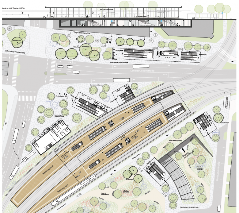 Architektonische Gestaltung des Erscheinungsbildes der neuen Haltestellen samt Oberflächengestaltung der unmittelbaren Umgebung