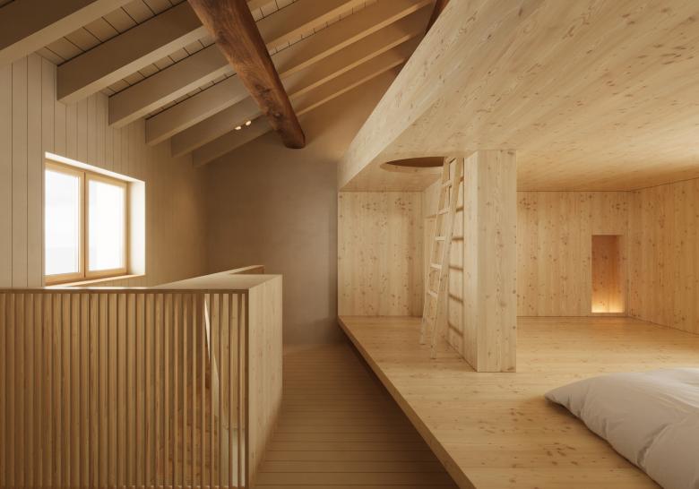 Altitude 1800 is a project embraced by the peaks of the Pennine and Bernese Alps, set in Valais, Switzerland, with sweeping views of iconic summits like the Matterhorn and Weisshorn. Positioned above the Rhône Valley, the house sits within open farmland, surrounded by an expansive landscape where distant views merge with the immediate experience of seasonal changes. Swiss pine and larch forests, along with alpine meadows, offer a rare blend of remote beauty and accessibility, fostering a continuous dialogue between architecture and the alpine environment.