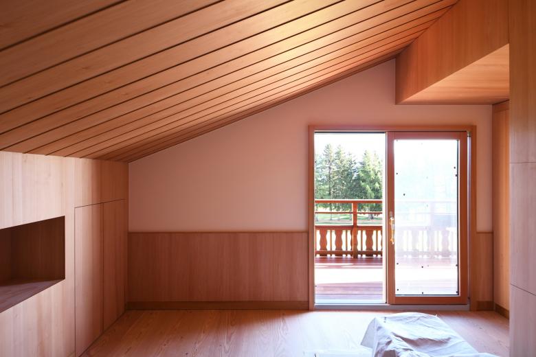 A Swiss chalet transformation weaves together the joys of family and their art wrapped in the warmth of softwood. The design embraces the space with the unique play of natural light, sculpting distinctive atmospheres with the artistry of expert joinery and Japanese master crafting.