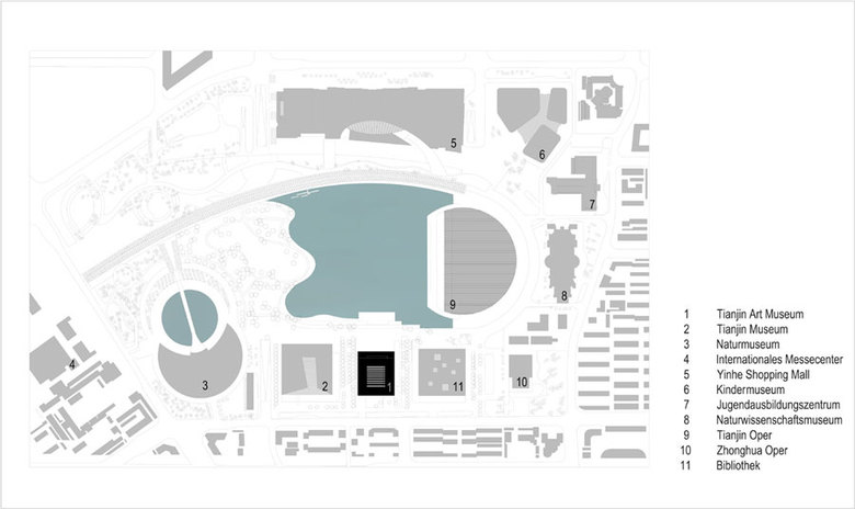Das Tianjin Kunstmuseum, das im Jahr 2009 als erster Preis aus einem internationalen Wettbewerb hervorging, wurde nach nur 3 Jahren Planungs- und Bauzeit am vergangenen Wochenende für Museumsbesucher geöffnet. Das neue Kunstmuseum ist Teil eines Stadtentwicklungsprojektes für ein 90 Hektar großes Kultur- und Freizeitareal im Zentrum der nordchinesischen Metropole Tianjin. Mit einer Bruttogeschossfläche von ca. 33.000 m² bietet es Flächen für Wechselausstellungen und Raum für vier ständige Ausstellungen: chinesische Kalligraphie, westliche Kunst, Plastik und moderne Kunst.