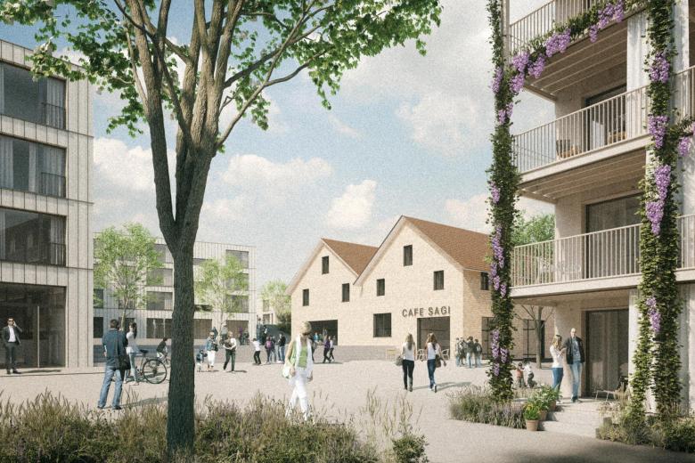 Die beiden ältesten Gebäude als Zeugen der Vergangenheit des Ortes werden zum Ausgangspunkt der zukünftigen Entwicklung. Die Geschichte wird in die Transformation des Areals eingearbeitet und die bestehende in eine neue Identität überführt. Die mehrheitlich U- oder winkelförmig komponierten Volumengruppen definieren eine Vielzahl kleinmassstäblicher Frei- oder Zwischenräume. Um den Unholzplatz wird ein klares Zentrum geschaffen. Ein beziehungsreiches Geflecht aus durchgehenden Erschliessungsachsen sowie eine Vielzahl von Wegeverbindungen unterschiedlicher Dimensionen erinnern an dörfliche Strukturen. Die einzelnen Volumen sind wohlproportioniert und bieten ein breites Angebot unterschiedlicher Wohneinheiten. Die Höhenstaffelung des neuen Quartiers reagiert sowohl auf die bestehende Topografie wie auch auf die Massstäblichkeit der Nachbarsiedlungen. Die höheren Gebäudeteile profitieren von der Weitsicht in das Naherholungsgebiet Greifensee.