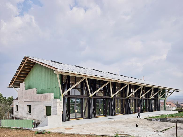 Auf dem Sockelgeschoss eines einstigen Weinlagers in Nuglar wird ein Wohnatelierhaus für 6 Parteien errichtet, welches Teile des alten Bestandes behält, um ungewöhnliche Aussen- und Innenräume entstehen zu lassen. Der leichte und elegante Holzbau spielt mit modularen Systemen, raffinierten Detaillösungen und räumlichen Möglichkeiten und erlaubt es, unter einem grossen Dach andere Formen des Zusammenlebens auszuloten.