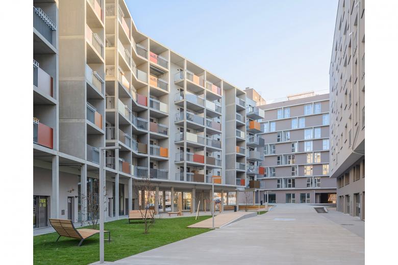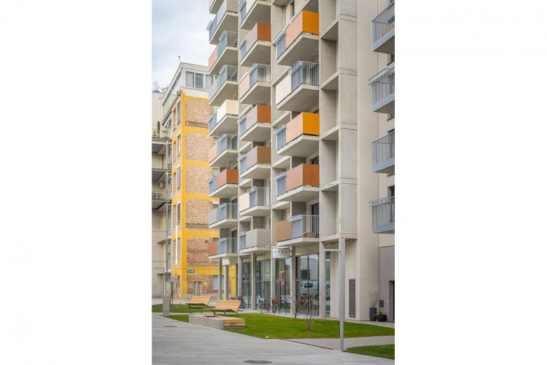 In unserem Bauteil entlang der Puchsbaumgasse sind 118 geförderten Mietwohnungen entstanden. Alle Wohnungen haben Loggien oder Balkone, die Sichtschutz bieten und zur Begrünung durch die Bewohner mit fixen Halterungen für Blumenkisten ausgestattet wurden. Für die Erdgeschoßzone haben wir spezielle „Microlofts“ entwickelt, die auf mehreren Ebenen Atelier, Arbeiten und Wohnen zulassen.