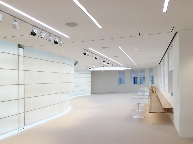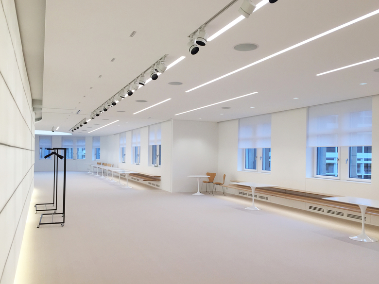 Unterschiedliche Raumnutzungen, vom Défilé bis zur Präsentation von hochwertigen Taschen und Textilien, erhalten eine eigene, spezifische Lichtstimmung.