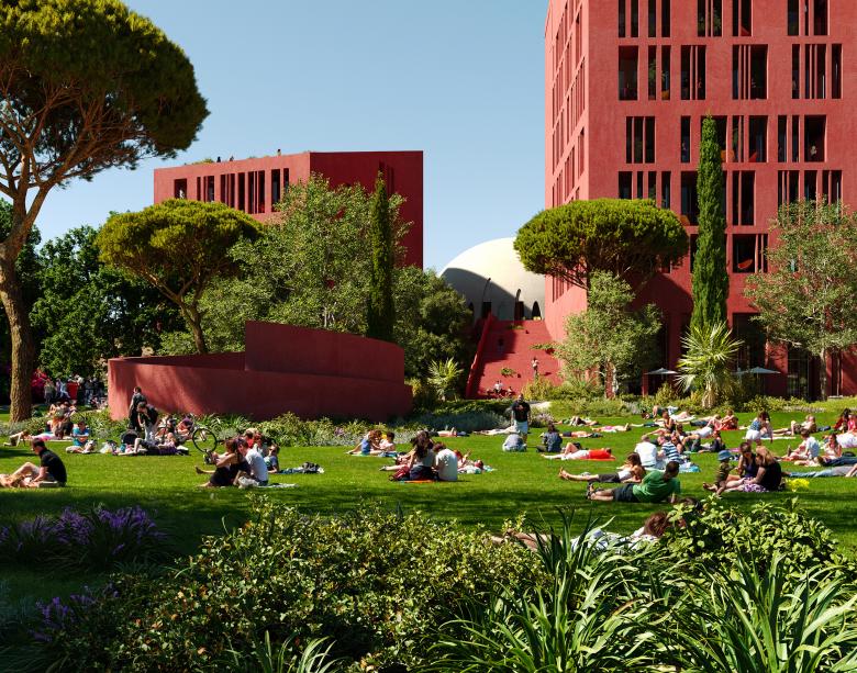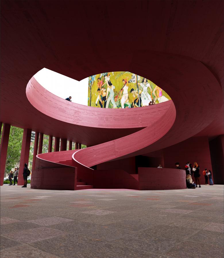 Der Fokus auf die Förderung sozialer Interaktion, Zusammenarbeit und Integration setzt sich in der räumlichen Organisation der einzelnen Gebäude fort, wobei jede Etage eine Abfolge von Räumen bildet, die die Nutzer von den geselligsten zu den privateren Zonen führen. Ein großzügiger Kern, in dem Menschen sich verbinden können, führt zu sozialen Dachterrassen. Weiter innen führt eine Lobby, die zugleich als kollektiver Arbeitsraum dient, zu privaten Büros und Klassenräumen. Inspiriert durch die Nutzung der Loggien durch Studierende während der Proteste, umschließen tiefe Loggien jede Etage, dienen auch als visuelle Verbindung zwischen den Gebäuden und fördern ein Gemeinschaftsgefühl. Ebenso betont die räumliche Organisation der Agora die Demokratisierung des Raums und fördert die Beteiligung der Menschen am gemeinschaftlichen Erlebnis. Die „Agora“ organisiert das Publikum konzentrisch um eine kreisförmige Bühne – ähnlich antiker griechischer Theater – und ermöglicht verschiedene Sitzszenarien.