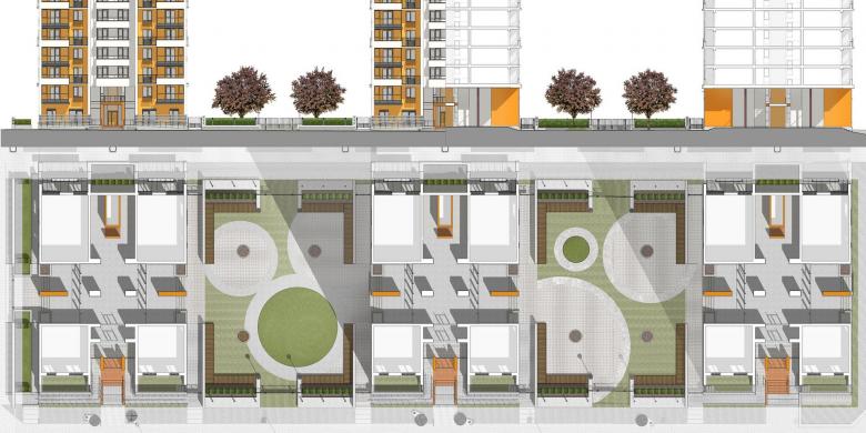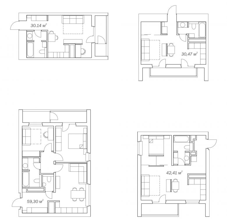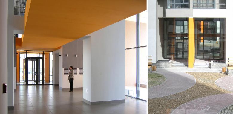 Проект развивает типологию жилья, ориентированного на аналоги европейского социального домостроения – это комфортные квартиры с чистовой отделкой и бытовым оборудованием, адресованные молодым или пожилым семьям и студентам. На момент проектирования эта типология была новинкой для российского рынка недвижимости. Комфорт прежде всего зависит от функционального зонирования, а не от размеров квартиры. Это стало ключевым тезисом проекта, начиная с разработки планировочной схемы и заканчивая дизайном интерьеров и решением благоустройства.