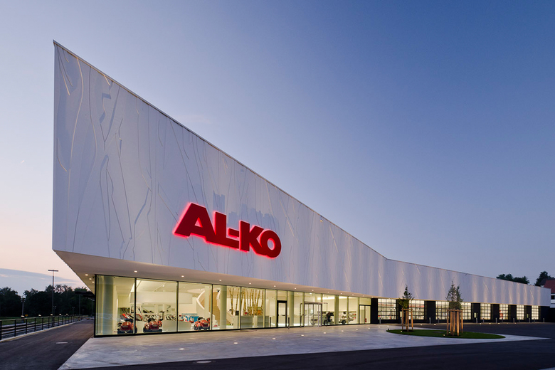 Die drei Unternehmensbereiche der ALKO Gruppe präsentieren ihre Fachkompetenz aus Gründen der Synergie gemeinsam in einem neuen KundenCenter. Ein schwebender Baukörper mit abstrahierter CI Textur in Beton beherbergt Produktausstellungen, Schulungsräume, Service und Kundenbereiche.