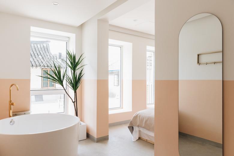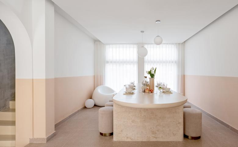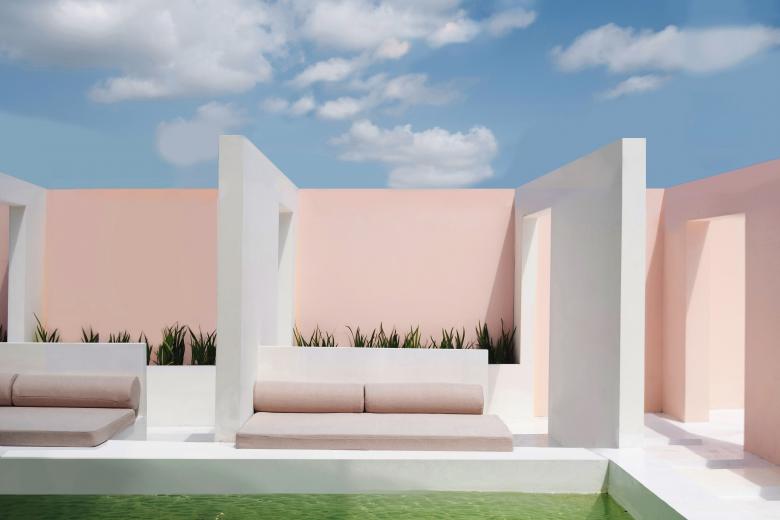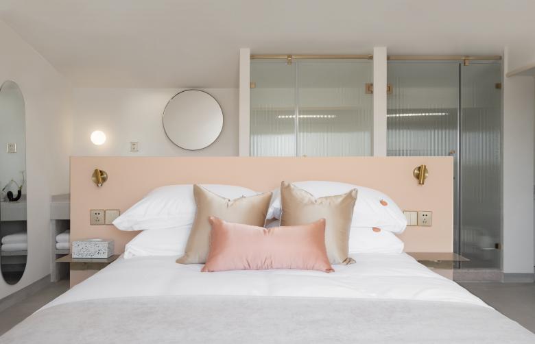 栖梦是一家专注打造“少女风“的民宿品牌,项目主题色彩的选择延续了栖梦惯有的风格,以粉色为主,通过硬朗的材质和大体块的造型去中和粉色的甜腻,正如每一个在这座城市中打拼的女孩都有着刚强的一面,但她们却也温柔细腻。