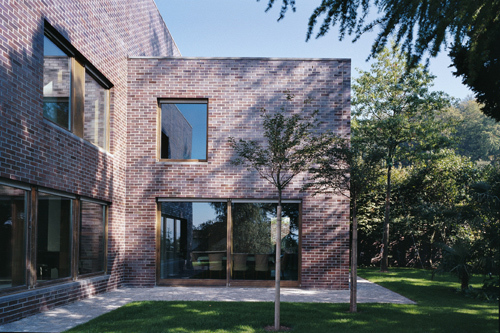 Der äusseren Ungerichtetheit der Skulptur, die z.B. die Geschossigkeit überspielt, entspricht eine innenräumliche Komplexität, die durch den zweigeschossigen Galerieraum strukturiert wird.Der Weg durch das Haus ist zielgerichtet und endet in jeweils neuen, überraschenden Raumsituationen und Ausblicken. Alle Wege finden aber wieder zurück in die Halle und kreuzen sich dort.In diesem Sinne sind das Wohnen (EG) die Galerie (OG) und die Halle mit dem Büro (DG) ein räumliches Kontinuum.