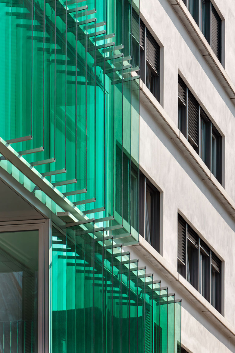 In der südlichen Friedrichvorstadt befindet sich die Liegenschaft Friedrichstraße 40. Ein Ort, der wie seine Umgebung über Jahre kulturell durchsetzt - von Literaten und Künstlern bewohnt war. Die Grundstücksfläche war zunächst mit einem zweigeschossigen Wohnhaus und später mehrgeschossig, hoch verdichtet mit Vor- und Hintergebäude dicht besetzt. Hier wohnten die Brüder Skadamowski, die als Erfinder der 3-D Brille aber auch der Kinematografie in Deutschland gelten. Die kulturelle Prägung, das nördlich – zwischen Koch- und Leipziger Straße – angrenzende Quartier der Kurzweiligkeit sowie die Einkaufsmeile Friedrichstrasse jenseits der Leipziger sorgten in der Vergangenheit für hohe Besucherfrequenzen. Der ehemalige Grenzkontrollpunkt „Checkpoint Charlie“ markiert heute historische Ereignisse. Er ist nicht weit entfernt und von der Friedrichstraße 40 gut sichtbar. Das neue Haus schließt die letzte Lücke im Straßenbild. Die Friedrichstrasse hat hier eine deutlich urbane Charakteristik, die Hoffläche ähnelt einem großen Garten. So werden wir die Flächen der sieben Obergeschosse raumgreifend, so tief wie möglich in das Grundstück hineinführen. Sie werden als offene Grundrisse variabel in der Nutzung sein. Die Fassade zur Friedrichstrasse wird technisch präzise formuliert, vollkommen transparent mit vertikalen Glaslamellen zum Schutz gegen Aufheizung und zweigeschossigen Erkern, die das Haus mit der Umgebung verknüpfen – eine städtische Aussage. Die Gartenfassade ist anders - ebenfalls präzise aber mit Schiebetüren, raumhoch, für große Öffnungen, aus denen man sich hinauslehnen kann. Der Sonnenschutz wird aus textilem Material „geflochten“. Im Innenraum treffen Glas, Holz und Textil aufeinander – hier werden Stadt und Garten miteinander verwoben. Die bildhafte Interpretation des Ortes durch Antje Schiffers begleitet den Weg durch die öffentlichen Bereiche des Hauses. Nachhaltigkeit in Konstruktion und Technik sowie der Medienversorgung sind bereits mit dem Gütesiegel GOLD durch die DGNB vorzertifiziert.