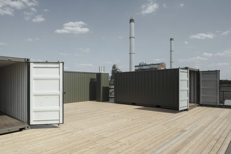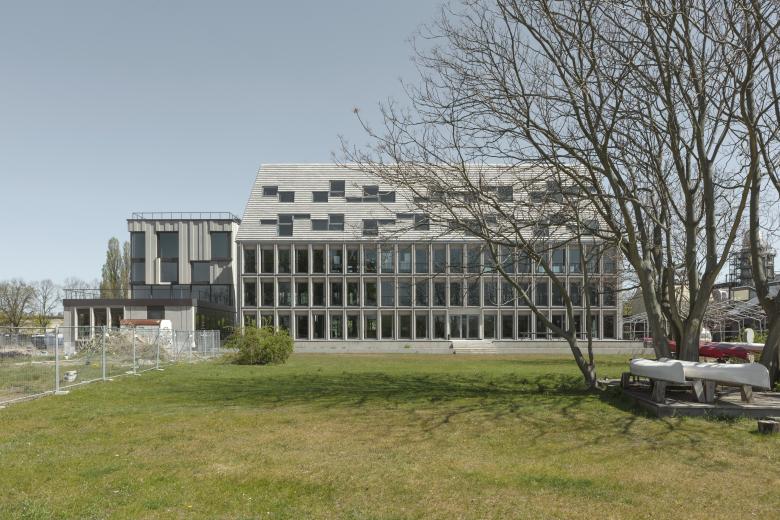 Neben zwei unter Denkmalschutz stehenden Gebäude aus Zeiten der Flussbadeanstalt sind zwei Bauten aus DDR-Zeiten erhalten, die umgenutzt und aufgestockt werden - das ehemalige Dienstgebäude und die ehemalige Kantine.