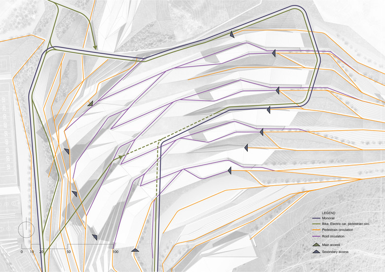 Additional synergies derive from interspersing semi-public/ leisure activities within the academic environment, so as to create a common strata, to informally encourage social interaction, encounters and proliferation of knowledge across social and disciplinary confines.