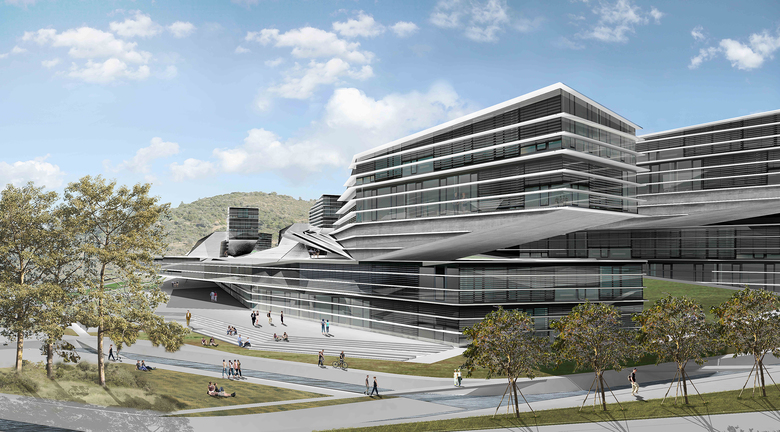 The plinth/ or podium_ clustering, a grouping strategy to share the academic facilities, fostering crosspollination among various disciplines. This attempt is substantiated through social interaction by inserting semipublic/ leisure like activities within the academic environment. Transgressing the traditional isolation of the individual faculty, the project proposes a common strata, where the knowledge is distributed ‘horizontally’ through informal encounters among students. The proposal believes in enhancing the built up of novel knowledge, in encouraging the practice of trans-disciplinary research.