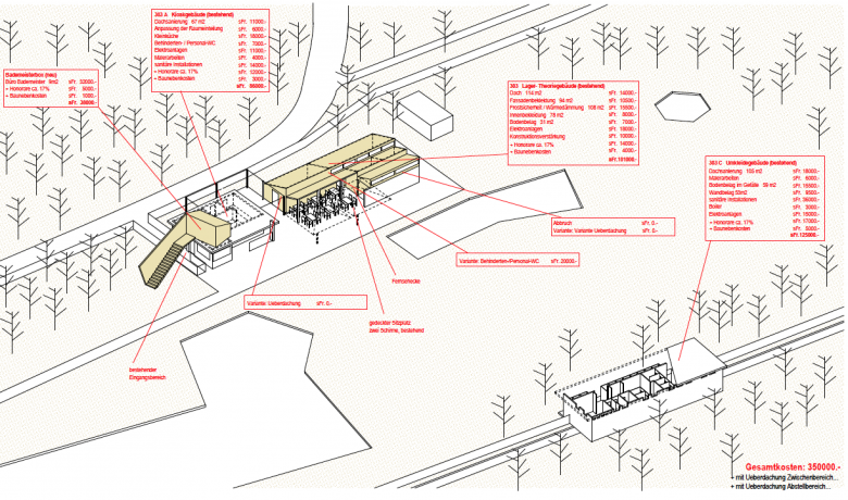 1. Rang / 2008 / Wettbewerb / Auftraggeber: Badi Thusis / Team: Iseppi-Kurath GmbH / Sanierung und Erweiterung bestehende Infrastruktur insbesondere Gastrobereich.