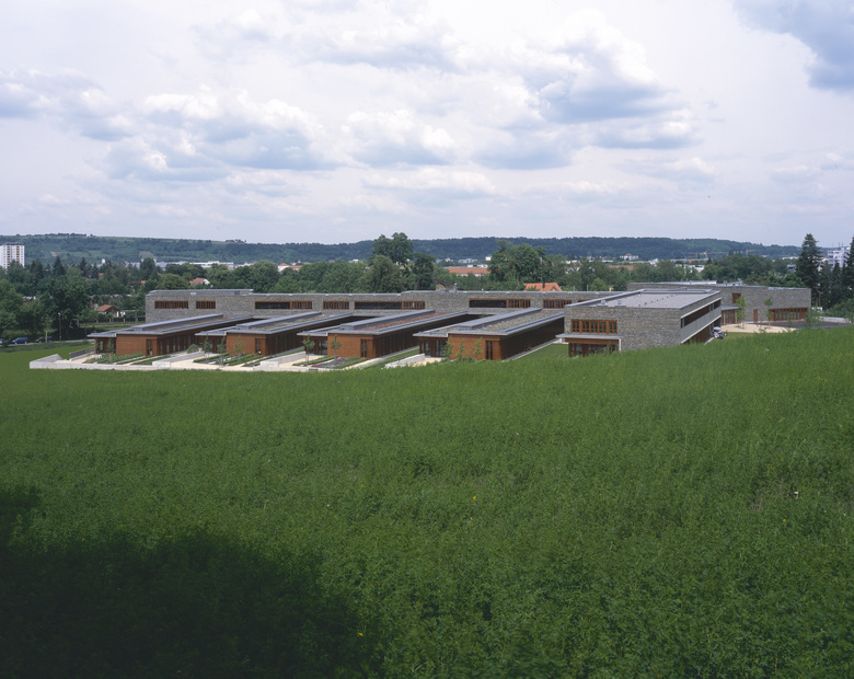 Die Neubauten der Blindeninstitutsstiftung in Regensburg interpretieren die vorgefundene landschaftliche und topographische Situation und setzen die sehr differenzierten organisatorisch-funktionalen Anforderungen des Nutzers in eine bauliche Gestalt um.