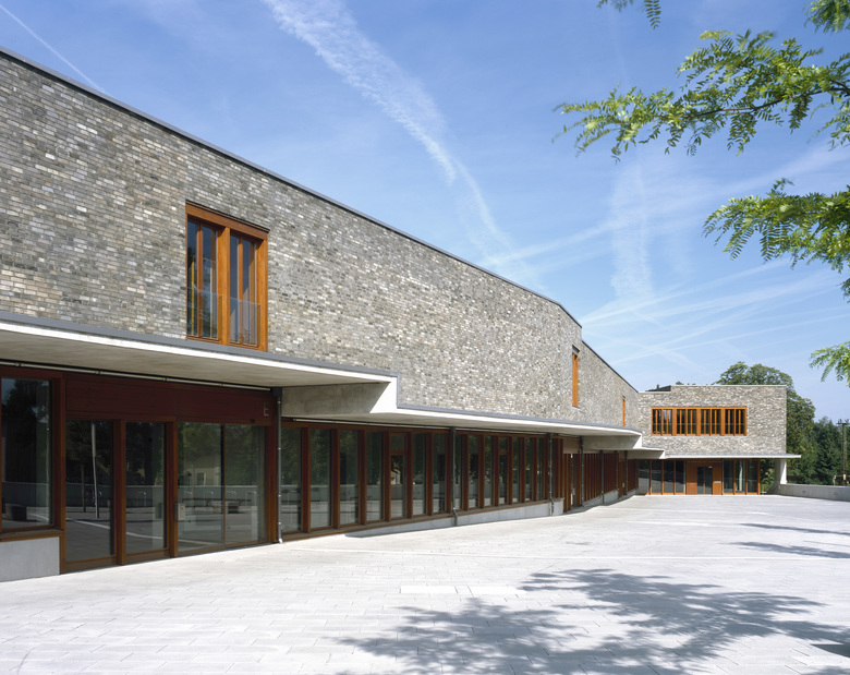 Die Einrichtung betreut schwer seh- und mehrfach behinderte Kinder, die auf ein schwellenloses Ineinandergreifen der Räumlichkeiten angewiesen sind. Daher entstanden eingeschossige Schulbereiche, die sich am Hang in geringen Höhenschritten hinaufstaffeln und sich mit dazwischen liegenden, intimen Höfen in die Landschaft integrieren. Sie sind Teil einer gebauten Topographie. Der verwendete, grüngrau reduzierte Kohlebrandziegel kommentiert die landschaftliche Szenerie und den historischen Klosterkomplex „Schloss Prüfening“ vis à vis.