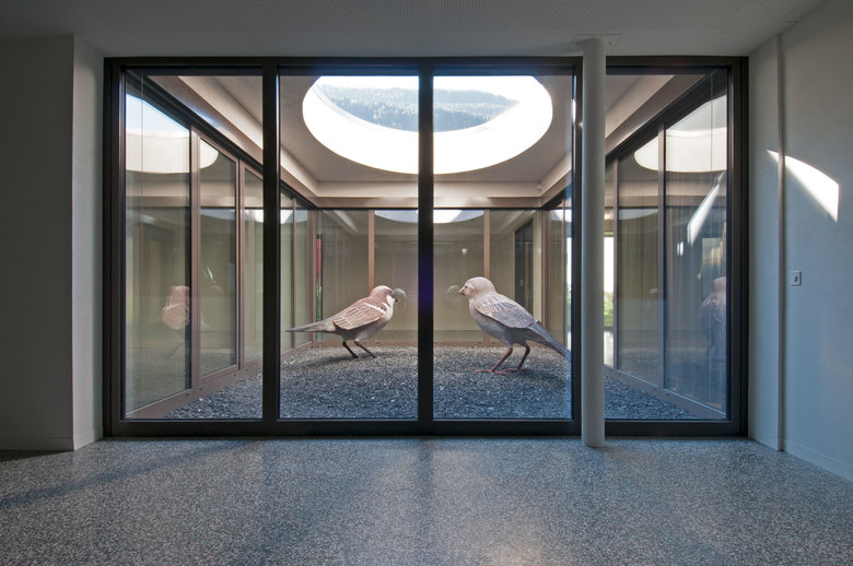 Aufgrund seiner abgestuften Form weist das Bestandsgebäude eine behutsame Einbettung in die kleinmassstäbliche Quartierstruktur auf. Mittels der Erweiterung wird die volumetrische Grundanlage als additives Gebäudepaar fortgeführt, das mit dem neuen Eingang über eine gemeinsame Haupterschliessung verfügt. Der verbliebene Gartenraum wird durch Alt- und Neubau zoniert, wodurch nach Stimmung und Bedeutung differenzierte Aussenräume entstanden sind.