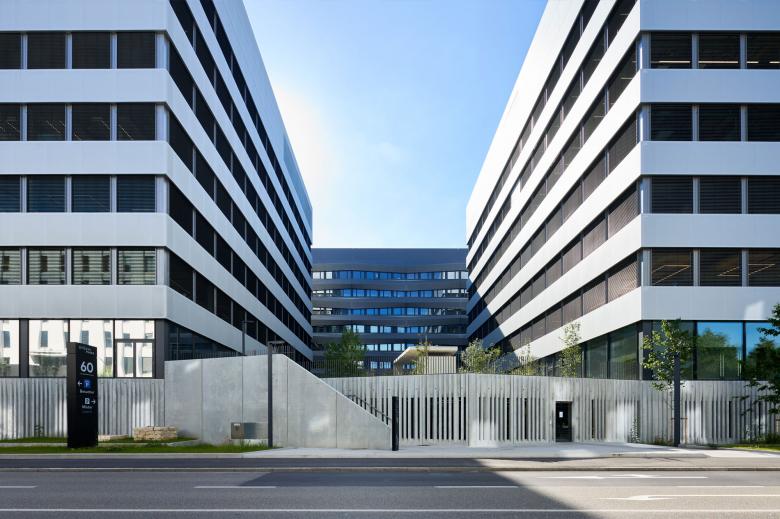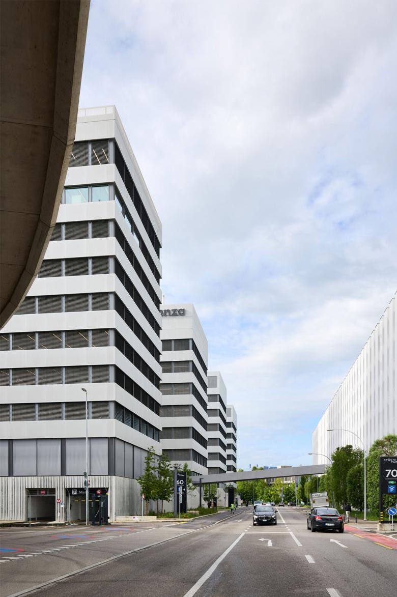 Erweiterung der Büro- und Forschungsbauten um vier Reiterbauten im Stücki Park Basel.