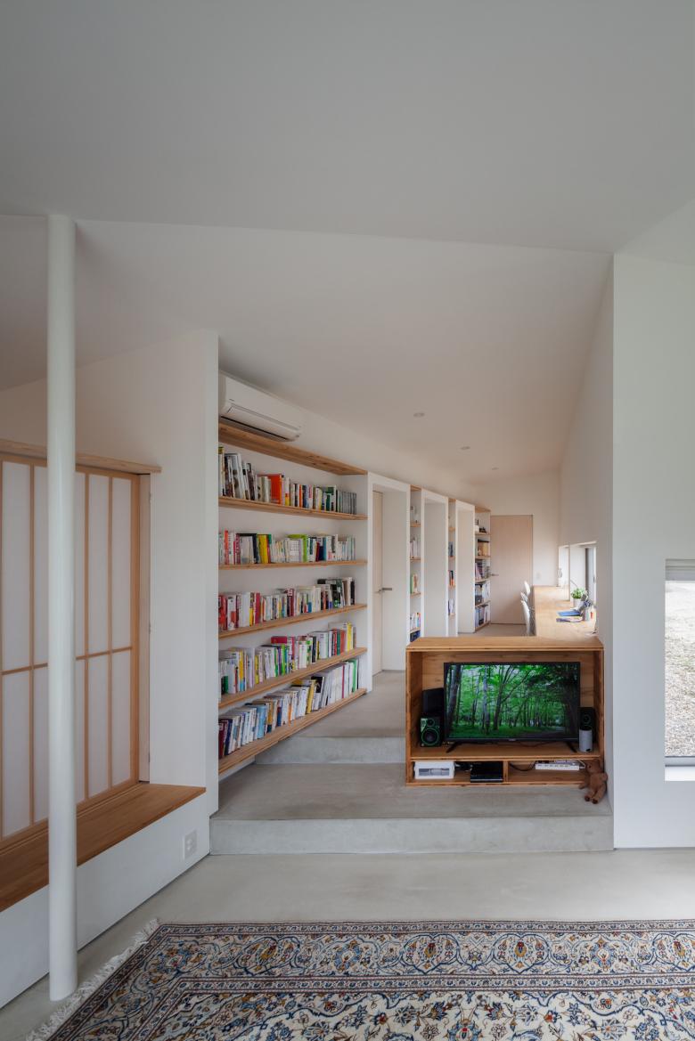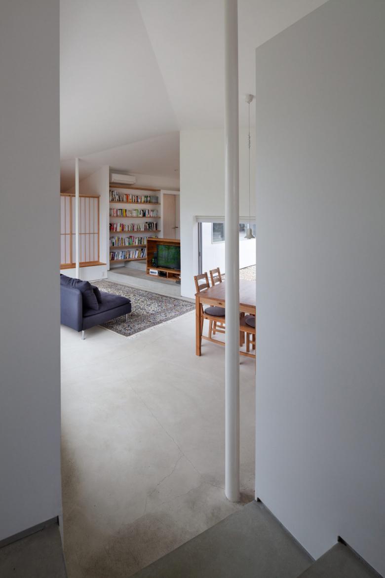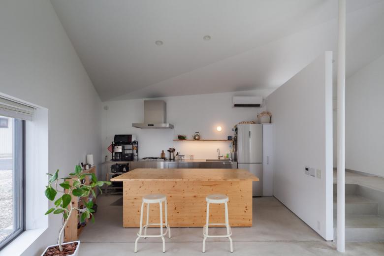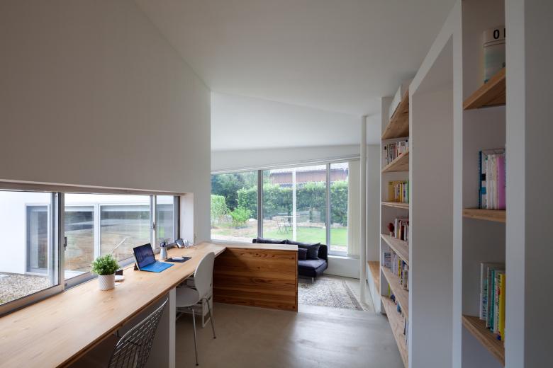 The distance from the road, the approach to the parents' house, the garden and plaza connected to the parents' house, there are no absolute numbers, and this one-story house was born from the appropriate distance without excesses or deficiencies.