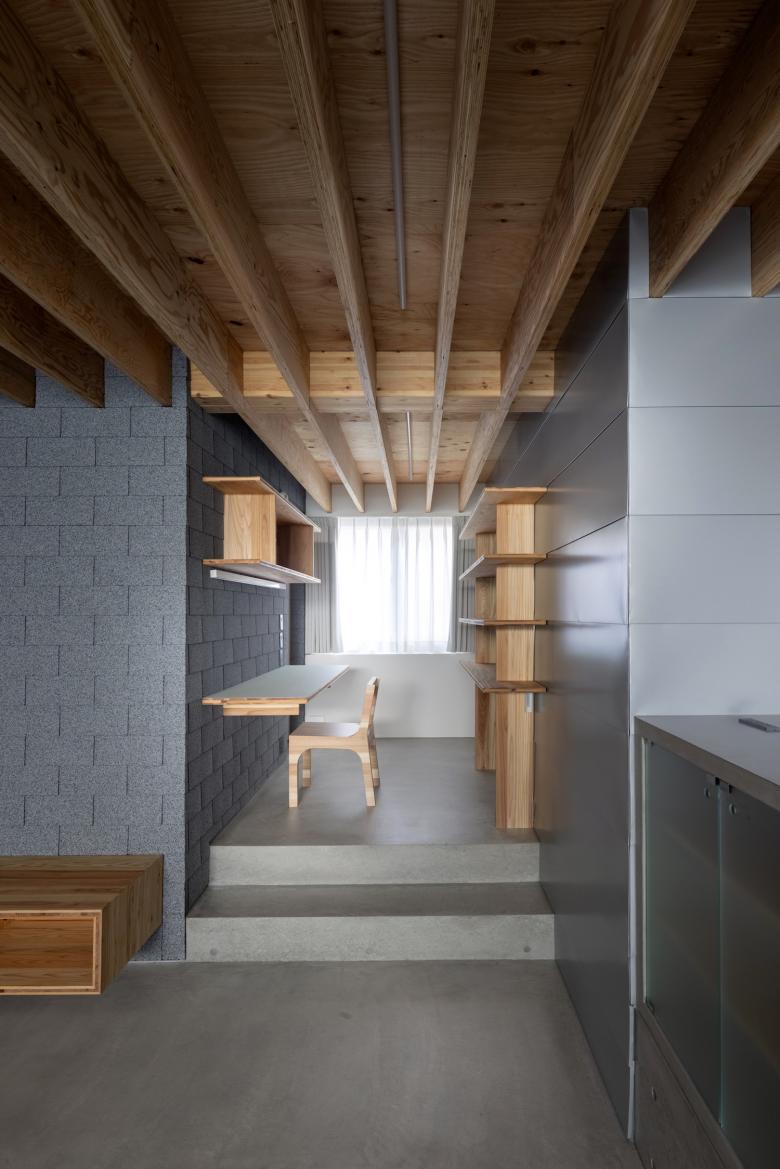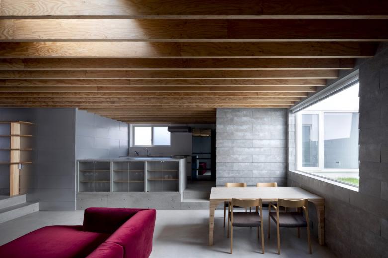 A residential area in a northern provincial town. The house is built as a relatively closed box with small openings due to the cold northern winters, but it is nestled in the surrounding small houses and is designed to fulfil the client's desire for a quiet and tranquil life.