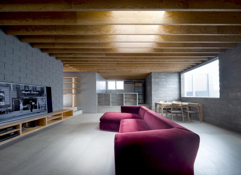 The space enclosed by the four boxes is treated like a town square, and the space between the boxes is seen as a town street, where the function of the house is carried out. The central square was the living and dining area.