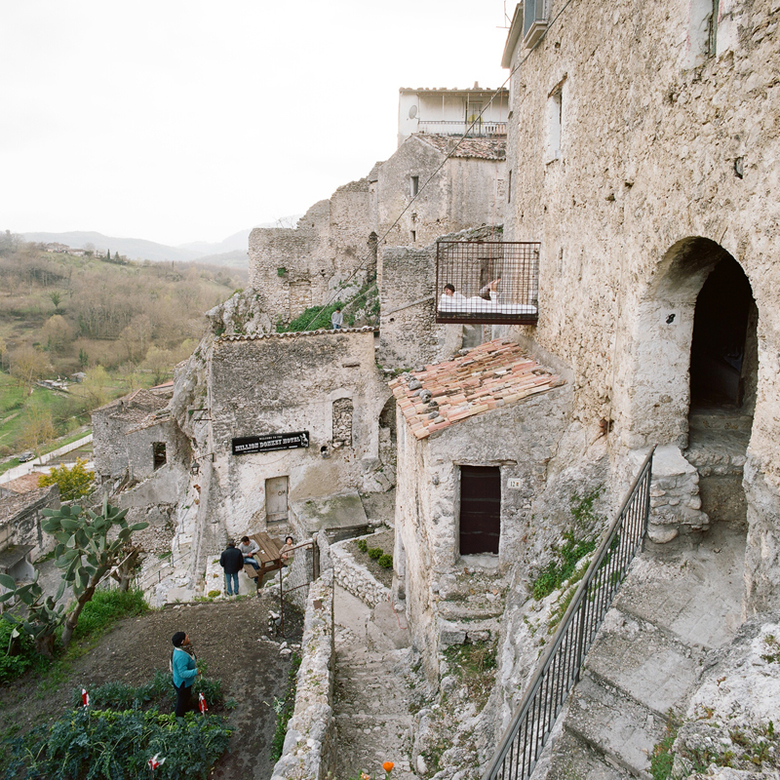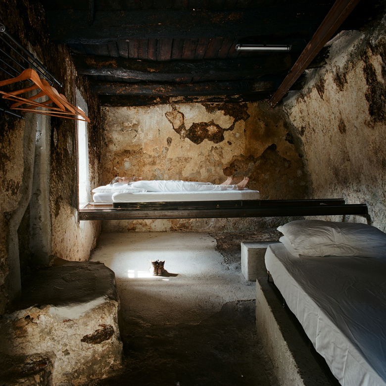 Prata Sannita wird in seiner Gesamtheit als großes, verstreutes Hotel gesehen, welches noch Zimmer frei hat: die nunmehr verlassenen Räume. Diese werden nicht nur als Erinnerungsträger, sondern in ihrer Verwahrlosung auch als Potential für die Zukunft gesehen: „Alles scheint möglich!“ Sie werden zu Zellen eines größeren Ganzen unddas gesamte Gebiet von Prata Sannita somit als einziger Aktionsraum wahrgenommen. Durch die erste Adaptierung von 3 Raumeinheiten (und einem besonderen „Badezimmer“) zum vom Alltag entrückten „Hotelzimmern“ wurde ein erster Impuls gegeben, die Räume wieder benutzbar zu machen – diesmal jedoch für den nicht von der Sorge nach einer besseren Zukunft getriebenen Nomaden: dem Reisenden.