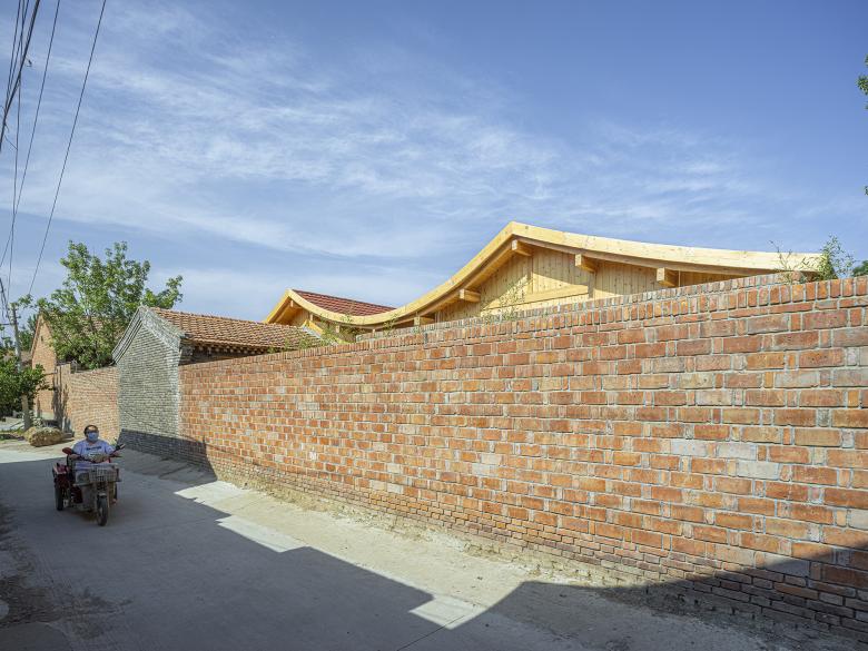 The project is located in an ordinary village on the outskirts of Beijing, a typical plain-based northern Chinese village mainly composed of one- and two- storey courtyard houses. Most houses in the village face south, and feature red bricks and tiles. Besides, there are also various added constructions built independently by local villagers for meeting their changing living needs, such as shanties with colored-steel roof or glass roof, which blend with the natural fabrics of the village.