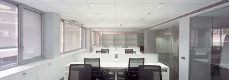 The interior design for the REURSA & INCASOL offices tries to drive the natural light to all work places in a 1100 m2 and 2,67 m height site . The space layout is achieved through glass divisions set up parallel to the façades and a perpendicular cupboards system.