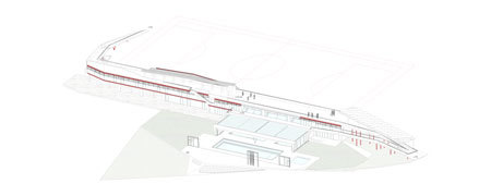 The Adaptation of the Sports Area of El Papiol transforms the limits between three existing facilities: football field, sports centre and swimming pools, by a connecting axis. This gives place to a pedestrian promenade crossing the sports area from East to West, organising accesses and becoming the new spaces' roof. The construction has been in process between 2003 and 2009, gradually substituting old buildings.
