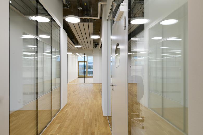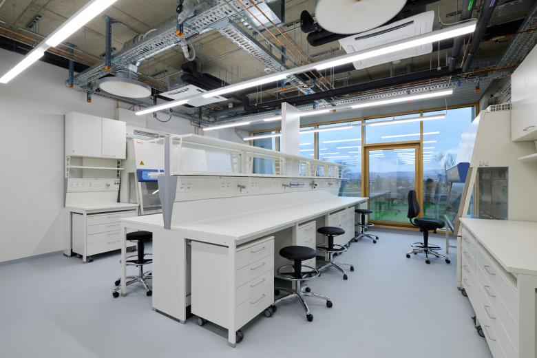 Blaser Architekten übernahmen zusammen mit dem Totalunternehmer Senn Ressources AG die Planung der Mietflächen im 4. Obergeschoss des Main Campus. Zudem begleiteten wir die Ausführungsplanung mit dem vom Totalunternehmer gestellten Fachplanerteam. Eingebaut wurden Labore für Analytik und Zellkultur, Büros, ein Aufenthaltsraum mit Teeküche.