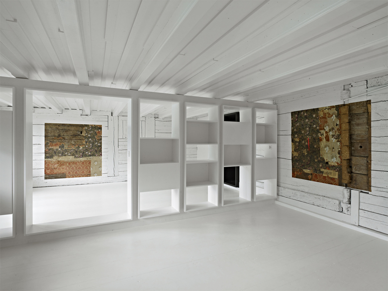 Im Gegensatz dazu ermöglichen die hellen, luftigen Räume klare Gedanken und den Weitblick über den See. Vorgefundene, mehrlagige Tapetenreste wurden durch die präzise Bearbeitung und Freistellung zu kleinen autarken Kunstwerken umgewandelt, zu inszenierten Zeugen der Vergangenheit.