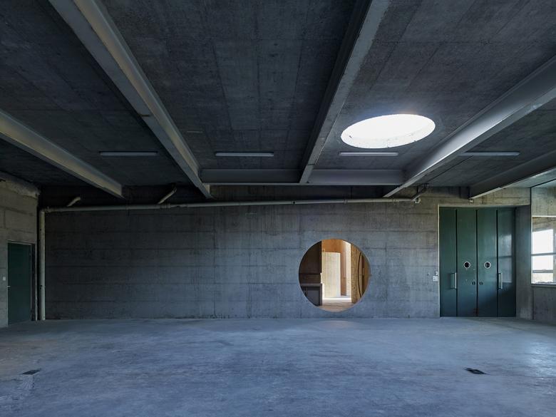 Innenwände werden entfernt oder mit Öffnungen versehen. Sind diese im Sommer geöffnet, entsteht ein grosser mäandrierender Gesamtraum. Die Halle des ehemaligen Ladens beinhaltet Raummöbel mit Bad, WC, Schränken und Gästezimmer, welche Raumnischen ausbilden und den Gesamtraum in einen Wohn- und Atelierbereich unterteilen.