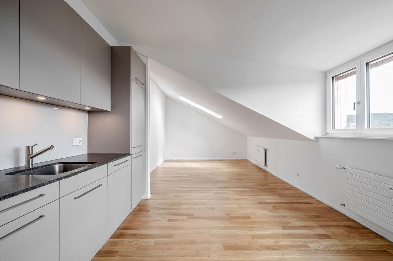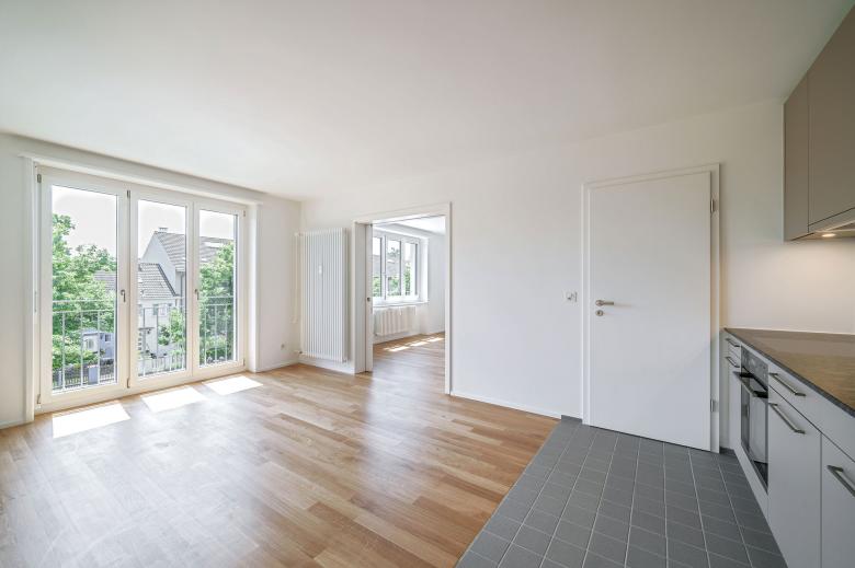 Im Rahmen der Sanierungsarbeiten wurde das Dach bis auf die Balkenlage des 2. Obergeschosses zurückgebaut und mit einer modernen Dachaufstockung versehen, wodurch je zwei zusätzliche, lichtdurchflutete Wohnungen pro Gebäude geschaffen wurden. Die neuen Wohnungen profitieren von Gauben und Dachflächenfenstern, die für eine optimale Belichtung sorgen. Zusätzlich wurden neue Holz-Metall-Fenster eingebaut, Fassadenöffnungen angepasst, sämtliche HLSE-Installationen ersetzt und die Kanalisation saniert. Brandschutzmassnahmen wie neue Deckenkapselungen und EI30-Türen ergänzen die Arbeiten unter sicherheitstechnischen Aspekten.