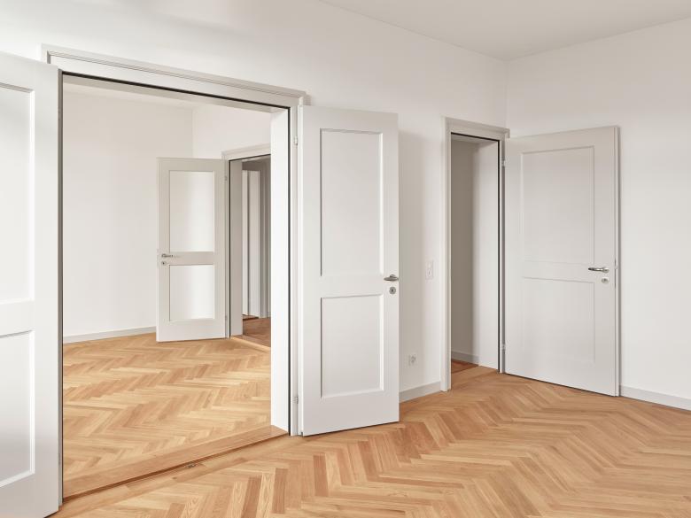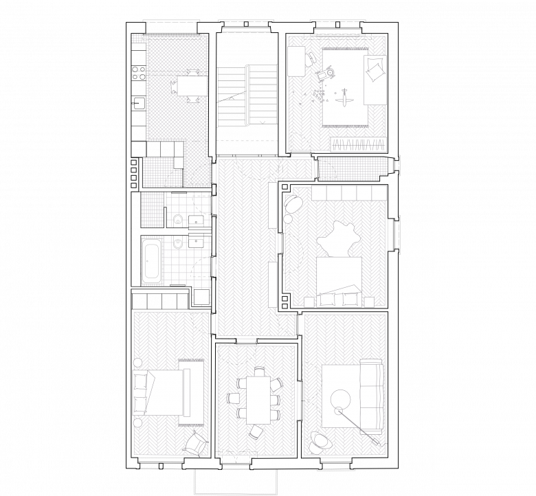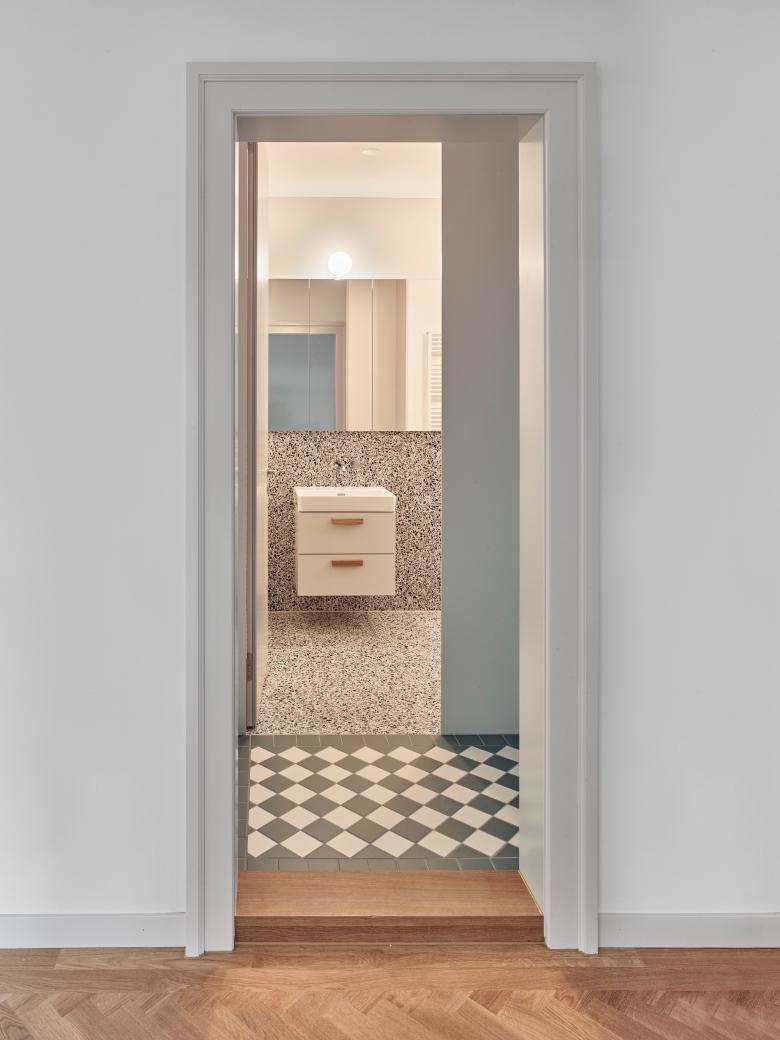Totalsanierung von zwei Wohnungen in einem Haus aus dem späten 19. Jahrhundert. Anpassung der inneren Struktur, Ersatz von Küchen und Nasszellen.